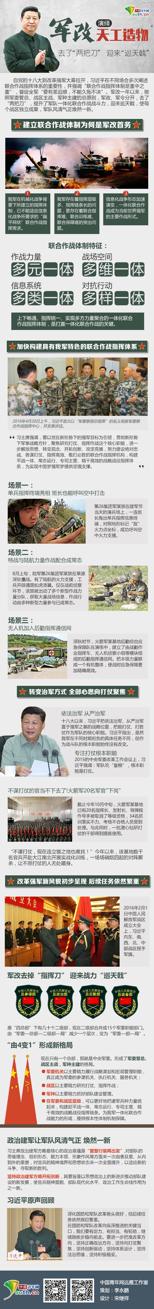 中國青年網北京11月30日電(記者 李永鵬) 自黨的十八大到改革強軍大幕拉開,習近平在不同場合多次闡述聯合作戰指揮體系的重要性,并強調“聯合作戰指揮體制是重中之重”,督促全軍“要有緊迫感,不能久拖不決”。軍改一年以來,按照軍委管總、戰區主戰、軍種主建的總原則,軍政、軍令分開,去了“兩把刀”,提升了軍隊一體化聯合作戰戰斗力,迎來巡天戟,使每個戰區獨立成章,軍隊風清氣正煥然一新。