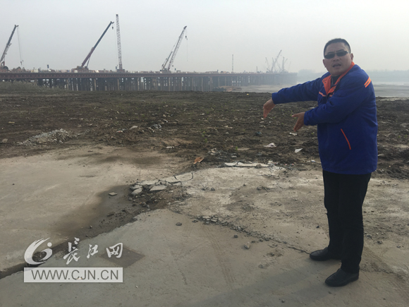 藕長洪介紹正在修建的青山長江大橋 李贏攝