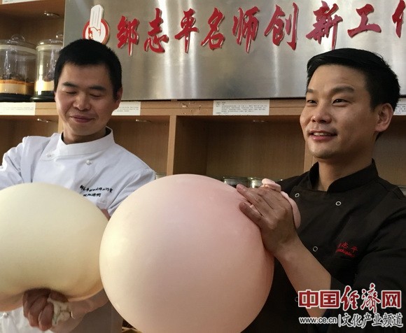 鄒志平師徒一起吹面球 中國經濟網記者魏金金/攝