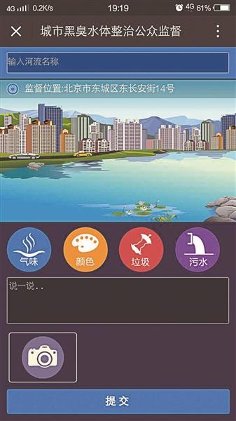而由環保部和住建部聯合創建的微信公眾號“城市水環境公眾參與”,除了設置有監督舉報黑臭水體的功能,還可通過微信進行自動定位,工作人員可根據舉報位置迅速來現場調查。