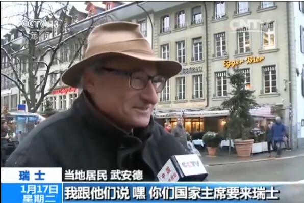 記者在街頭進(jìn)行隨機(jī)采訪,當(dāng)問到當(dāng)?shù)鼐用癜驳卖斒欠裰懒?xí)主席來訪瑞士時(shí),他表示很高興看到習(xí)主席訪問瑞士,瑞士是一個(gè)進(jìn)行交流的很好的地點(diǎn)。旅游業(yè)對兩國來說十分重要,現(xiàn)在有很多瑞士人去中國,因?yàn)橹袊莻(gè)能激起人們興趣的國家,能見識(shí)到多種文化、悠久的歷史,而且中國的交通和鐵路線路非,F(xiàn)代。另一位被采訪的居民武安德更是風(fēng)趣的說,他在中國的朋友要他多拍點(diǎn)習(xí)近平主席的照片。
