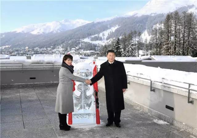 達(dá)沃斯演講之前,瑞士聯(lián)邦主席洛伊特哈德專程趕到習(xí)近平主席下榻的酒店同中國(guó)貴賓會(huì)面。酒店觀景臺(tái)上,一尊可愛的熊貓冰雕上插著中瑞兩國(guó)國(guó)旗。洛伊特哈德向習(xí)近平主席贈(zèng)送了一副印有“中瑞旅游年”字樣的紅色滑雪板。兩國(guó)元首合影留念,開啟中瑞旅游年的大幕。