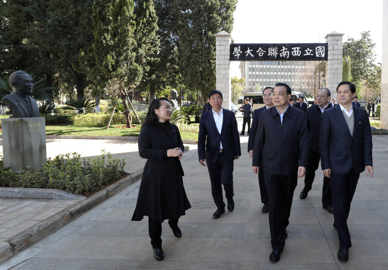 【李克強:你們要將西南聯大精神發揚光大】李克強24日來到位于云南師大的西南聯大舊址。寒假仍留校的學生們聞訊趕來?偫碚f,你們現在的教學條件比當年好得多。當年是“物質上得不了,精神上了不得”。希望你們在這里汲取前輩們的精神養分,傳承剛毅堅卓的文化品格,將西南聯大的精神發揚光大。