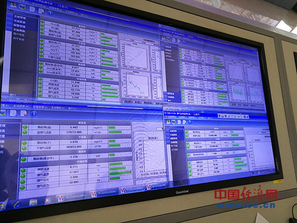 記者在天津天鋼聯(lián)合特鋼有限公司主控制中心拍攝到的,與天津市環(huán)保局和寧河區(qū)環(huán)保局實時同步的排污數(shù)據(jù)。(中國經(jīng)濟網(wǎng)記者范戴芫 攝)