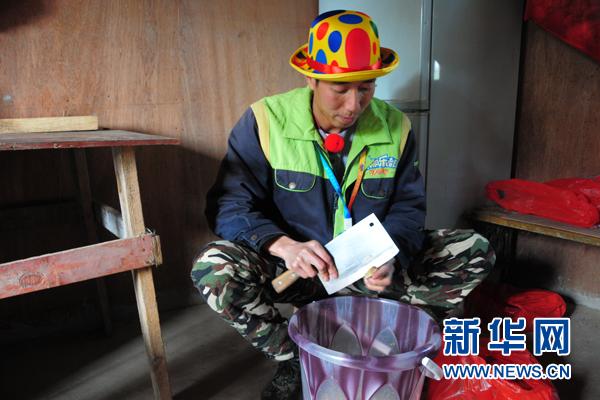 沈偉正在為袋鼠配制食物。新華網陳蒙攝