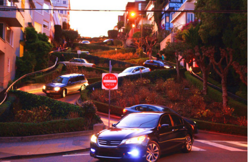 美國舊金山九曲花街蜿蜒的道路。新華網(wǎng)鞏陽 攝