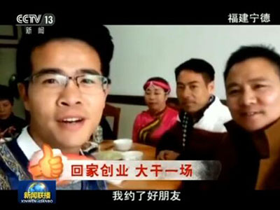 今天是大年初三,我約了好朋友來我家聚一聚。我是畬族小伙子雷宜杯,以前我們是住在偏遠的貧窮山區,這幾年通過國家的一些扶貧政策,我們也從偏遠的山區搬到了我們柏洋的新農村來。以前我們都是在外面打工,現在在家鄉就可以自主創業了。我在家鄉也創辦了屬于自己的互聯網電子商務公司。2017年我們將大干一場,把我們的茶葉銷往世界。
