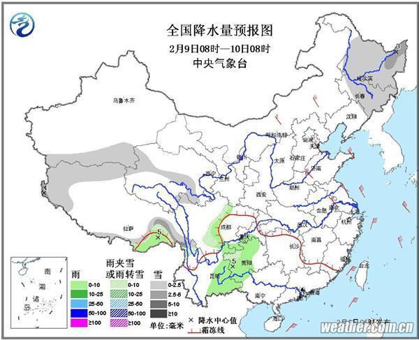 中央氣象臺預計,9日08時至10日08時,吉林、黑龍江、貴州西部、川西高原東部、西藏西部和東南部、新疆南部、青海中部等地的部分地區有小雪或雨夾雪,局地中雪;云南東部、貴州中西部等地有小雨或陣雨。內蒙古中東部、華北中東部、黃淮中東部、江淮中東部等地的部分有4~6級風。黃海大部、東海大部有7~8級、陣風9級西北風,臺灣海峽有7~8級、陣風9級偏北或東北風。