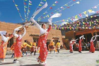 甘孜、阿壩兩州春節(jié)“五下鄉(xiāng)”活動(dòng),豐富藏區(qū)群眾文化生活。圖為鄉(xiāng)城縣青德鎮(zhèn)布機(jī)村演出現(xiàn)場(chǎng)。