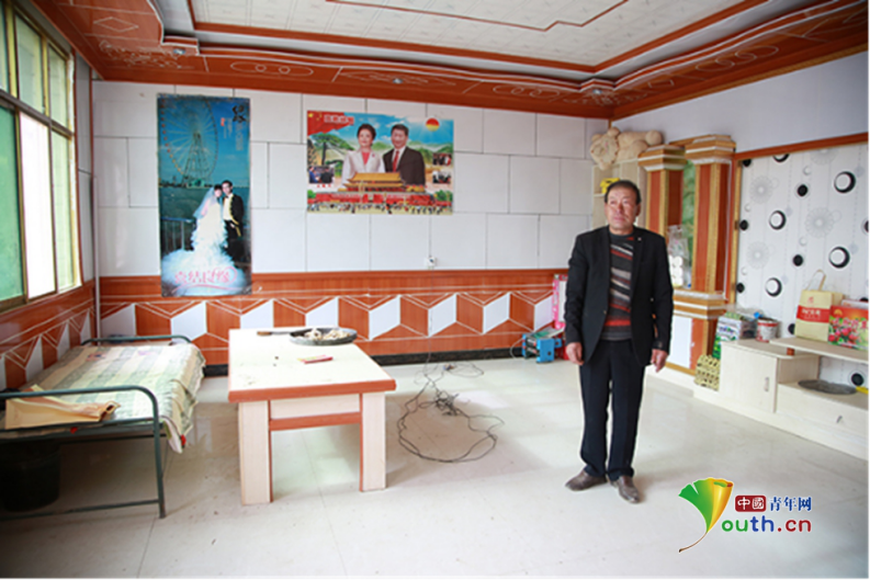 李尕猴在家中,其子李玉平為小寨村有史以來第一個大學生。 中國青年網記者 孫釗 攝