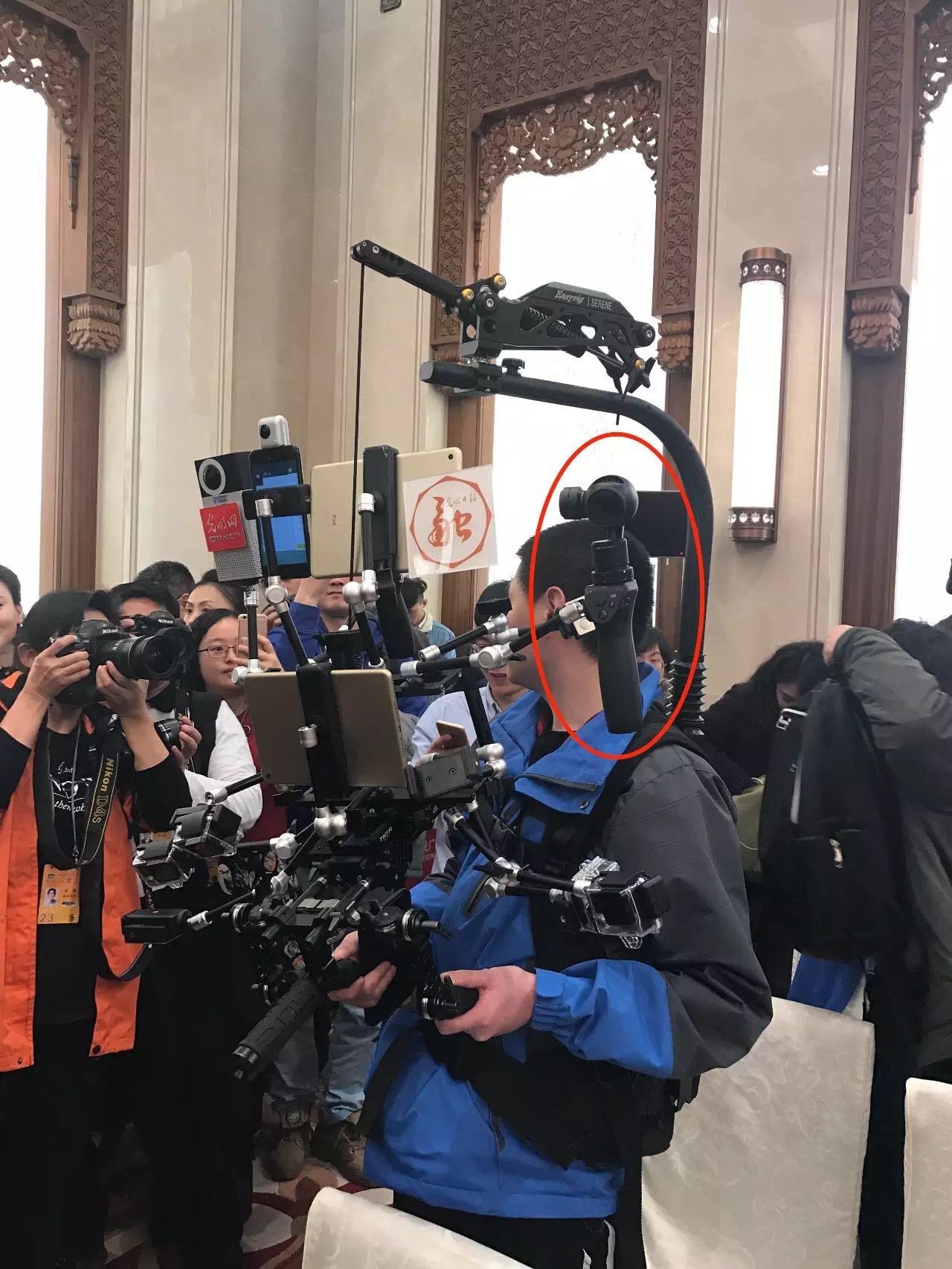 這位哥堪比直播攝影短視頻三棲巨星,不明覺厲,不過如此負重讓人感覺力不從心,不過再看看發現前方一名清新脫俗女記者.
