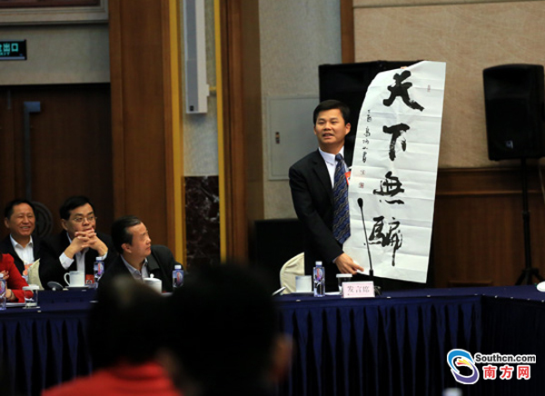 “電信詐騙是高科技、信息化、專業化的犯罪。為懲治犯罪,國家為此投入巨大成本。”在今天的廣東代表團全體會議上,揪著電信詐騙問題已達八年之久的基層人大代表陳偉才再次就如何打擊跨境電信詐騙發聲,并重提到相關部門應在源頭開展治理,堵住漏洞。為了讓與會的其他人大代表更好地了解打擊跨境電信詐騙的迫切性和重要性,他還亮出了自制的三塊圖解作詳細說明,他希望能完成一個小目標——天下無騙!