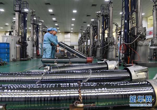 2017年2月份中國制造業采購經理指數(PMI)為51.6%,該指數連續7個月保持在50%以上。圖為河北省寧晉縣晶龍集團生產車間。(新華社記者 牟宇 攝)