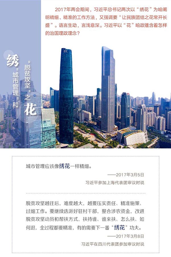 今年兩會,習近平兩次談到“繡花”。繡的什么花?