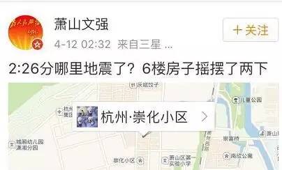 杭州多地網友表示震感強烈!