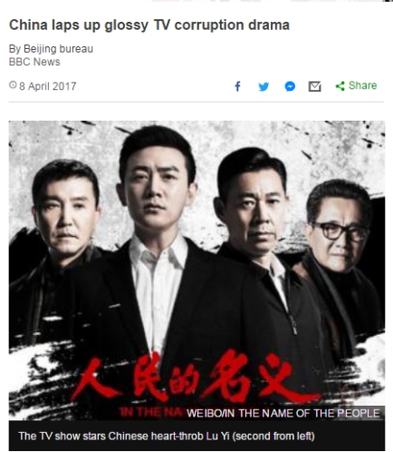“外籍情人、特警出動和鈔票鋪就的床——這些元素出現在中國電視劇《人民的名義》中。然而,更讓人意外的是,該劇的主要反面人物是中國高層政府官員。”