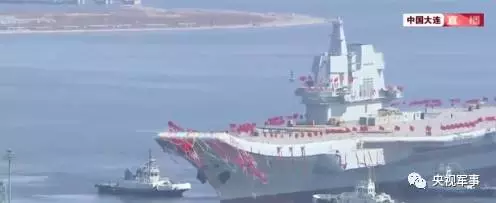 9時許,儀式在雄壯的國歌聲中開始。按照國際慣例,剪彩后進行“擲瓶禮”。隨著一瓶香檳酒摔碎艦艏,兩舷噴射絢麗彩帶,周邊船舶一起鳴響汽笛,全場響起熱烈掌聲。航空母艦在拖曳牽引下緩緩移出船塢,?看a頭。