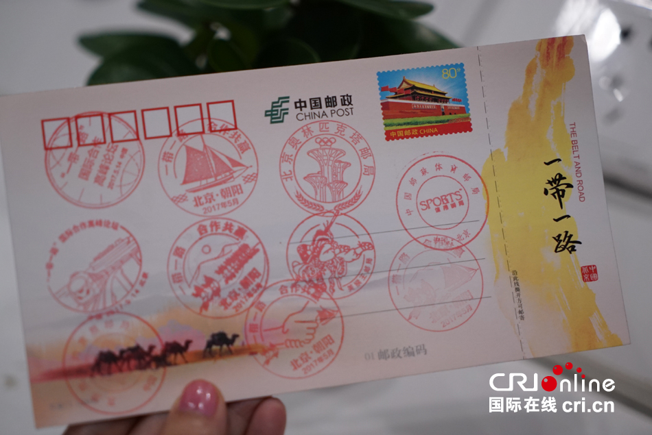 在會(huì)議中心的大廳,郵局還特意為各國(guó)“郵迷”們免費(fèi)贈(zèng)送“一帶一路 合作共贏”的明信片,還有10個(gè)頗具特色的“一帶一路”元素郵戳隨便蓋。這可是個(gè)香餑餑呢,瞧這些“郵迷”的熱乎勁!