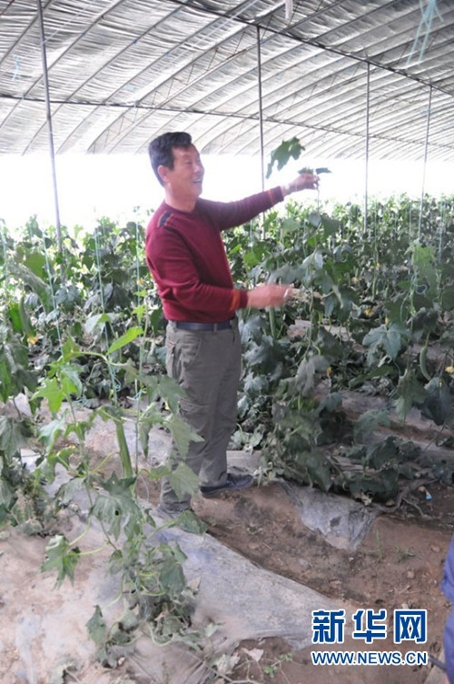 山東壽光的漢族“老支書”盛學武正在打理蔬菜。新華社記者魏兆陽攝