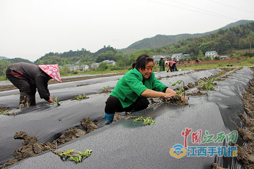 萍鄉武功山景區貧困戶在脫貧產業基地種植皇菊。通訊員易告文攝