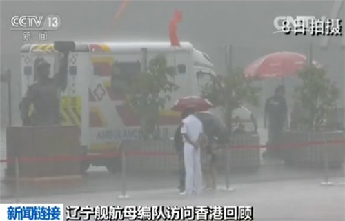 香港市民有機(jī)會(huì)登上遼寧艦航母編隊(duì)的3艘屬艦濟(jì)南艦、銀川艦和煙臺(tái)艦參觀,一睹屬艦風(fēng)采。即便是暴雨連綿,也擋不住市民的熱情。8日,記者在昂船洲軍營(yíng)捕捉到了感人的畫(huà)面,傾盆暴雨中,多位市民自發(fā)為執(zhí)勤戰(zhàn)士遮風(fēng)擋雨,這一幕感染了更多前來(lái)參觀的市民,也溫暖了現(xiàn)場(chǎng)執(zhí)勤官兵的心。