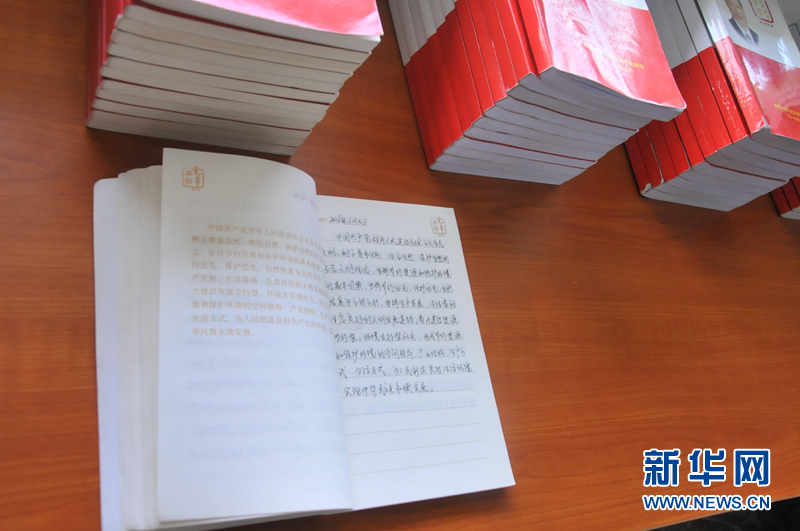 7月18日,網絡媒體國防行記者團參觀武警廣東總隊河源市支隊和平縣中隊。圖為中隊官兵日常使用的《手抄系列講話筆記本》。新華網記者 黃河攝