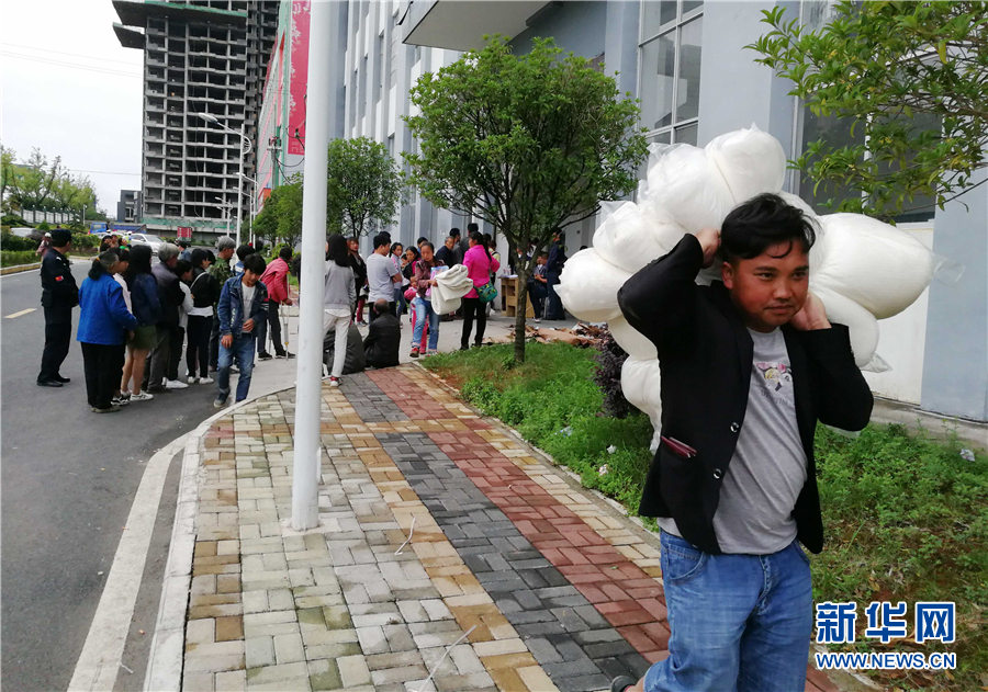 9月2日,貴州省納雍縣經濟開發區,轉移安置的群眾領取救災物資。