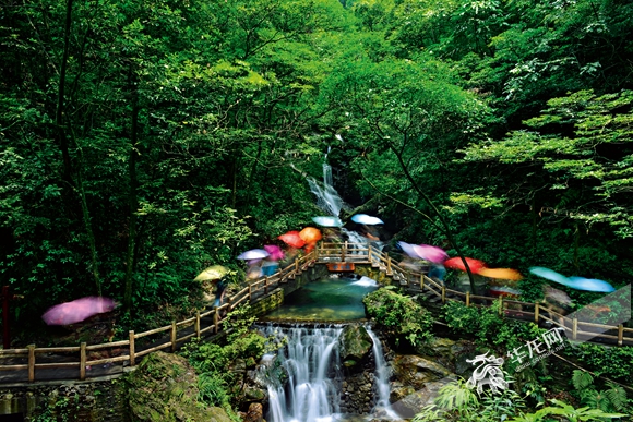 黑山谷景區(qū)云霧多,日照少,雨量充沛,平原部分屬亞熱帶濕潤(rùn)季風(fēng)氣候。景區(qū)森林覆蓋率高達(dá)97%,負(fù)氧離子達(dá)100000個(gè)∕立方厘米以上,堪稱“天然氧吧”。在夏季,景區(qū)平均氣溫26℃,是市民常去的周邊避暑勝地之一。