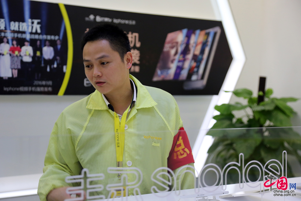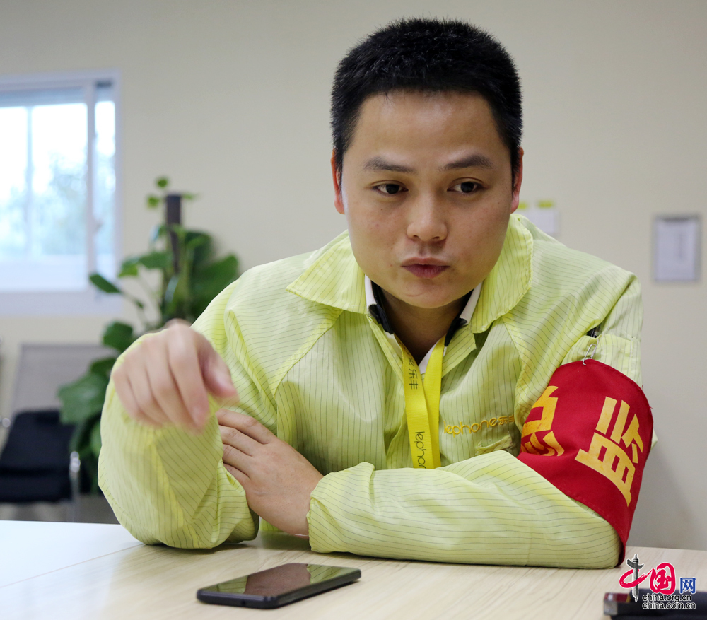 吳福全介紹生產(chǎn)車間裝機(jī)流程。 中國網(wǎng) 楊楠 攝影