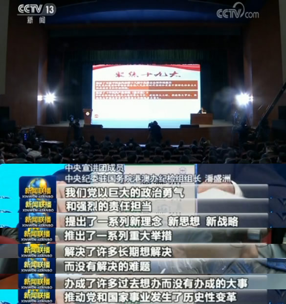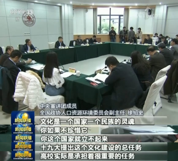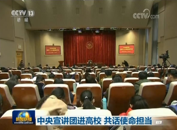 央視網消息(新聞聯播):連日來,學習貫徹黨的十九大精神中央宣講團走進高校,通過透徹深入的宣講、貼近實際的解讀,讓黨的十九大精神落地生根。