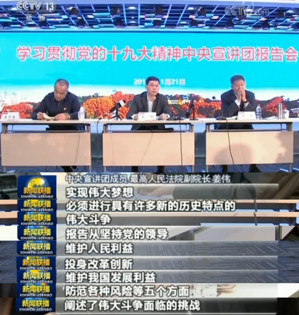 在武漢大學,中央宣講團成員、最高人民法院副院長姜偉圍繞黨的十九大的主要成果等主題,為師生代表宣講。
