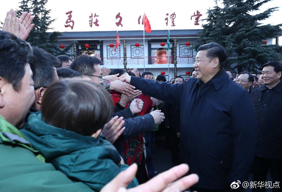 馬莊村的村民樂團遠近聞名。習近平走進村文化禮堂,饒有興致觀看了他們為宣講十九大精神排練的一段快板。習近平說,加強精神文明建設在這里看到了實實在在的落實和弘揚。實施鄉村振興戰略不能光看農民口袋里票子有多少,更要看農民精神風貌怎么樣。
