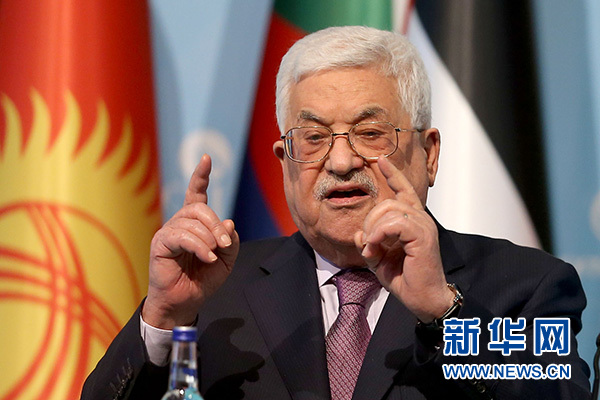 12月13日,在土耳其伊斯坦布爾,巴勒斯坦國總統阿巴斯在伊斯蘭合作組織特別首腦會議后的新聞發布會上講話。新華社/阿納多盧通訊社