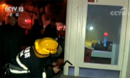 消防隊員十分鐘就趕到了現(xiàn)場,用撬棍撬開了門鎖。