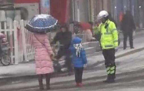 暖聞:山東鄒城交警雪中護幼童過馬路 告別時互敬軍禮
