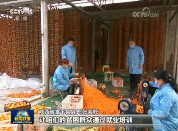 這兩天,陜西富平的一條條柿餅加工生產線正開足馬力,全力完成訂單需求,將有很多困難群眾從這項產業受益。脫貧工作中,陜西省要求每個貧困村有一個扶貧產業項目,每個貧困戶有一個短平快增收項目,脫貧戶有長效致富產業。在太白村,有270多個貧困戶都享受到了這樣的政策扶持。