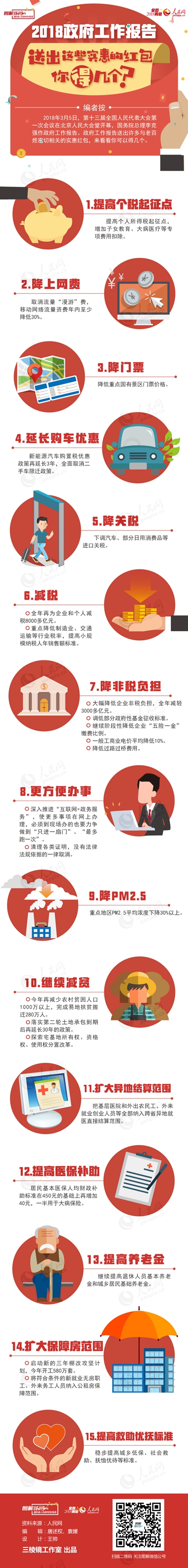 圖解:2018政府工作報告送出這些實惠的紅包,你得幾個?