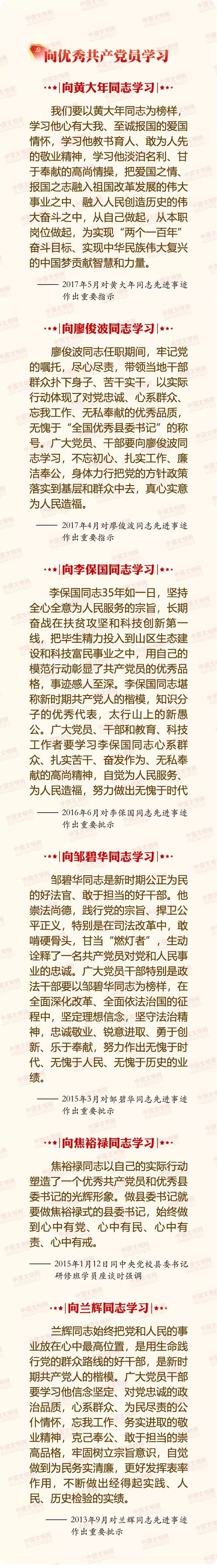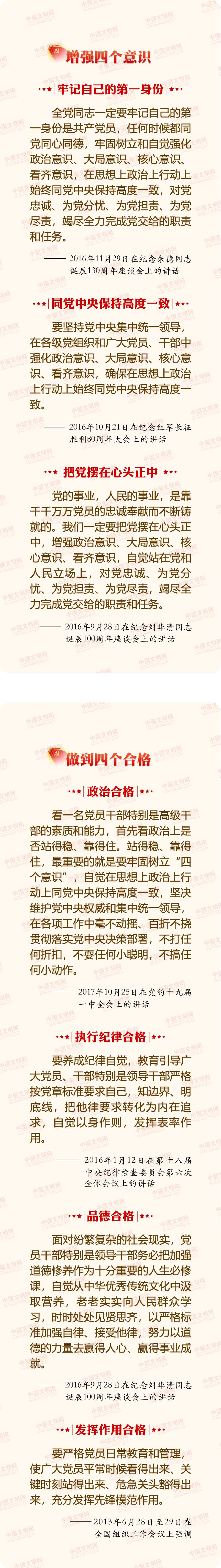 習近平總書記在黨的十九大報告中指出:“中國共產黨人的初心和使命,就是為中國人民謀幸福,為中華民族謀復興。這個初心和使命是激勵中國共產黨人不斷前進的根本動力!卑倌暾h恰是風華正茂,在中國共產黨成立97周年紀念日來臨之際,中國文明網精選編發習近平總書記部分重要講話中對全黨同志的要求,與網友共同學習。