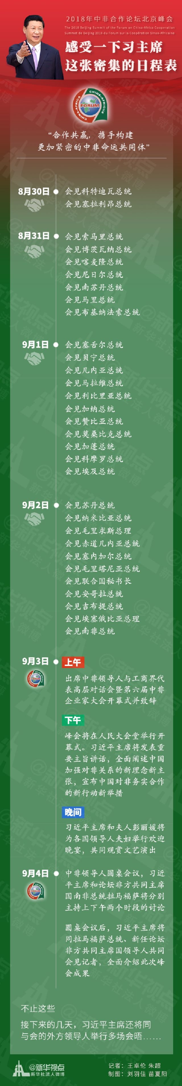 3日,中非合作論壇北京峰會(huì)將開(kāi)幕,峰會(huì)還沒(méi)開(kāi)始的前4天,習(xí)近平主席進(jìn)行的會(huì)晤已經(jīng)多達(dá)31場(chǎng)。日程到底有多密集?看圖感受一下