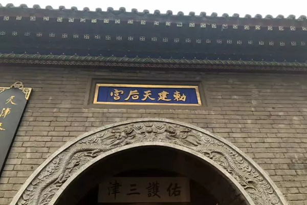 天津得名于“天子津渡”,可見天津的位置一直與水系有關。天津既有沿海港口,又有內陸的海河與京杭大運河,水系發達。宋元以來,天津是海運漕糧的終點,也是轉入內河裝卸漕糧的碼頭。至元朝年間,由于當時漕船海難不斷發生,于是元泰定三年(1326年),皇帝下令在天津海河三岔河口建天后宮(當時叫天妃宮),供人們奉祀海神天后,以保佑行船平安,天津媽祖文化逐漸興盛。每有漕運,船工及護航的官員們都要在出海或漕糧到達時,向天后祈福求安。慢慢地,周圍百姓也都借由媽祖祈福、求子、保平順,于是,天津成為北方傳承媽祖文化的勝地。以天后宮為中心,隨著漕運影響的擴展,往來的人們紛紛在天后宮周圍活動、聚集,造就了天津今日古文化街所在地的繁榮。