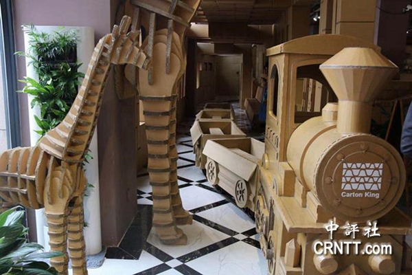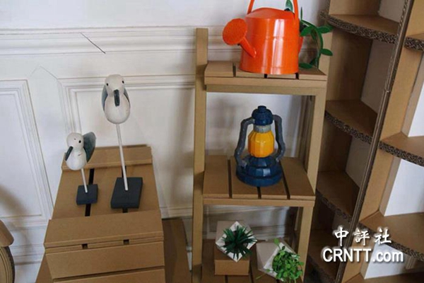 紙箱王內所有的商品都由紙制作而成。(圖片來源:中評社)