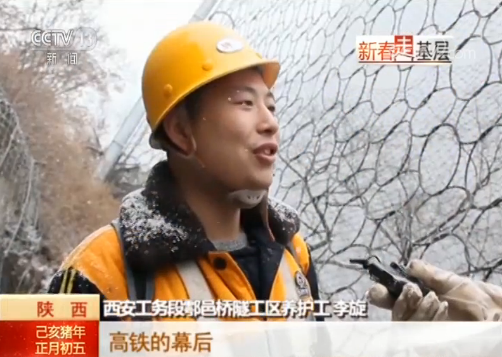 掃山小組 李旋:高鐵的幕后,還有好多像我們這樣(默默無聞)的人,看著這一條(西成高鐵)線,源源(不斷)地輸送著旅客,春節一趟接著一趟,其實想想這背后也有我的一份功勞。