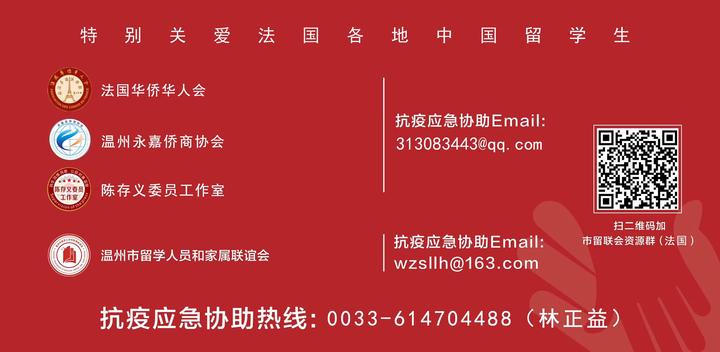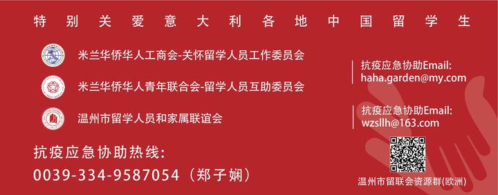 隨著全球新冠肺炎疫情的蔓延,溫州市在外留學(xué)生的安危也牽動著家鄉(xiāng)人民的心。昨日,溫州留學(xué)生圈子里不斷推送著9張紅色愛心小卡片,分別標(biāo)注著美國、意大利、英國、法國、德國、加拿大、新西蘭、澳大利亞、日本等9個國家的抗疫應(yīng)急協(xié)助熱線,掃描這些小卡片還將加入所對應(yīng)國家的留聯(lián)會互助群,提供抗疫有關(guān)相應(yīng)的資訊和幫助。