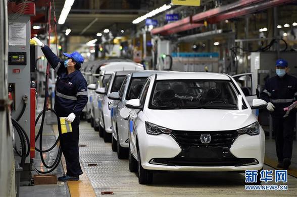 工人在合肥市高新技術產業開發區合肥長安汽車有限公司車間忙碌(2月26日攝)。新華社發(周牧 攝)