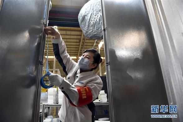 合肥迅達包裝股份有限公司的工人在口罩生產車間工作(3月17日攝)。新華社發(周牧 攝)
