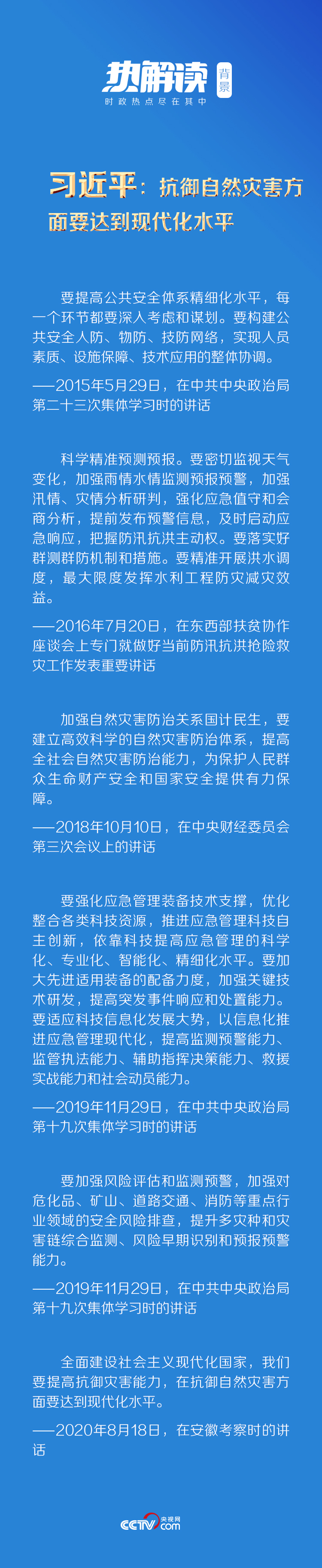 總書記為“鄉親們生產生活都有著落、有希望”感到高興。他勉勵當地干部群眾,“愚公移山、大禹治水,中華民族同自然災害斗了幾千年,積累了寶貴經驗,我們還要繼續斗下去”,并對未來“在抗御自然災害方面要達到現代化水平”提出更高要求。