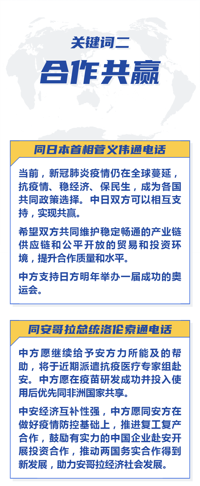 據新華社9月25日電,習近平主席當晚分別同日本首相菅義偉、安哥拉總統洛倫索通電話。