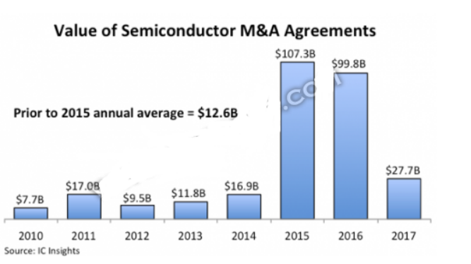 半導體并購活動在2019年的總額同比增長22%,達到317億美元。