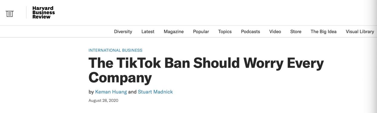 △《哈佛商業評論》:TikTok禁令讓所有企業感到擔憂