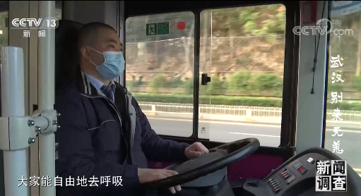 現在在武漢乘坐公交車,已經不用刷健康碼,但提醒乘客佩戴好口罩仍是司機李濤的一項工作。